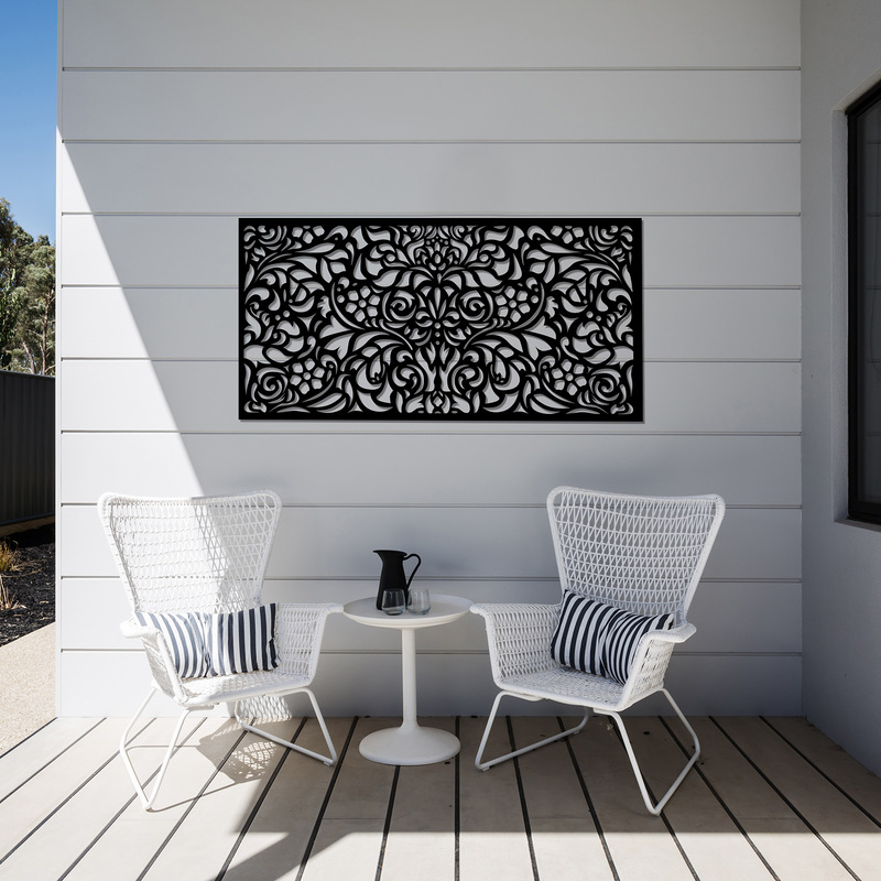 This modern India-inspired symmetrical BAROQUE design is filled with character. It will fit in with both modern and vintage décor and is sure to be a talking point whether you hang it inside or out.