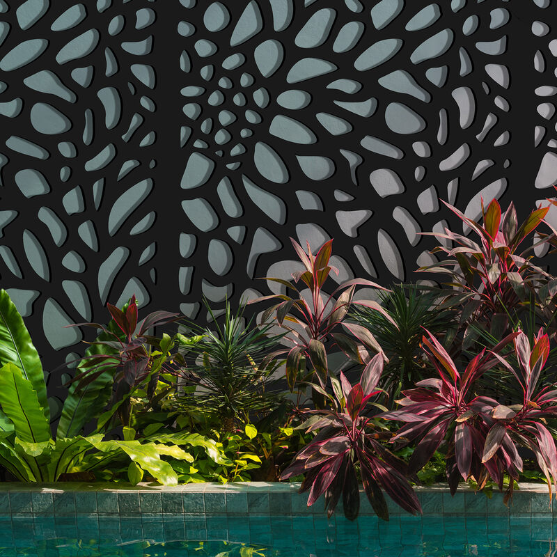The cheery floral burst of the BLOOM Decorative screen below will add a delightful designer touch to any indoor or outdoor wall and makes for a beautiful divider or sectional wall.