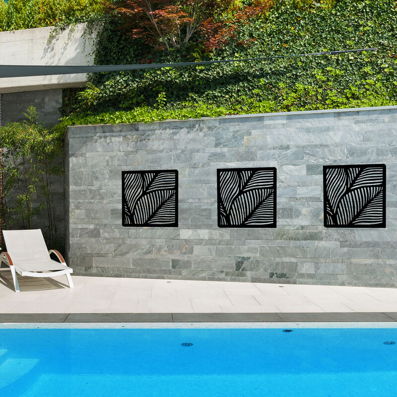 The fashionable FRONDS wall art design below creates a bold tropical vibe. Whether used as part of an outdoor landscape or indoors as decorative feature, it makes for a strong focal point in any area.